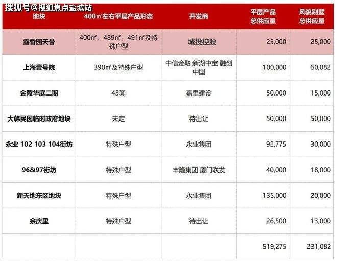 根据楼典完整统计,整个新天地、露香园、金陵路片区目前所有可供出售的项目(含所有可供开发土地),还有约75万㎡,其中大平层产品供应量还有约52万㎡,以300㎡的套均面积计算,还有1700-1800套的平层货量,应对的是4年左右的推盘周期,相当于每年供应400-450套左右。
