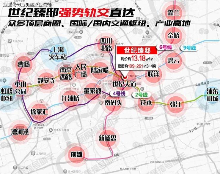 步行15分钟生活圈内,涵盖四轨交,距离2/4/6/9号线世纪大道站直线距离约400米,可直达市内众多CBD、双机场、双高铁站、国际金融贸易区、国家级产业高地等等……这样的公共交通通达度在整个上海几乎没有对手!