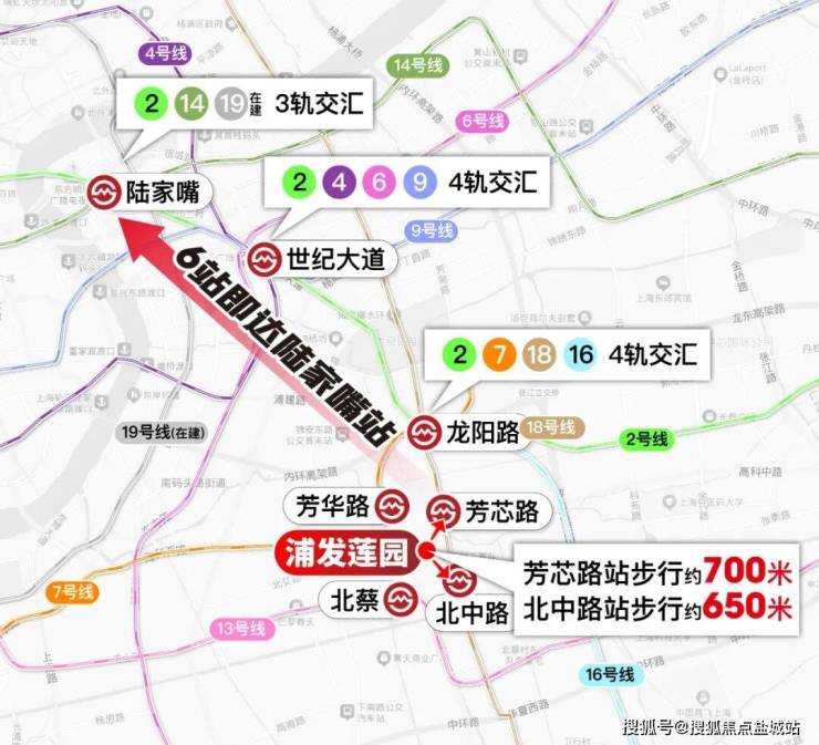 项目坐拥18号线芳芯路站(约700米)、北中路站(约650米) ,1站龙阳路(4线换乘枢纽),2站世纪公园,6站即达陆家嘴。