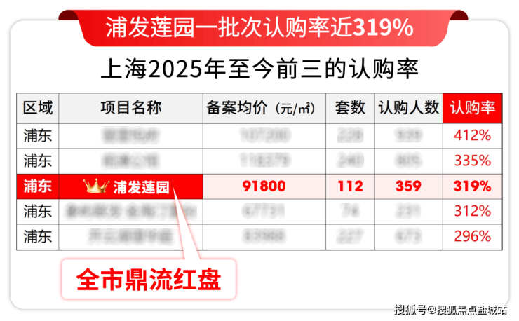 2、浦发莲园一批次112套房源吸引359组认购,认购率高达约 319 %,位列今年新房 认购率TOP3 !