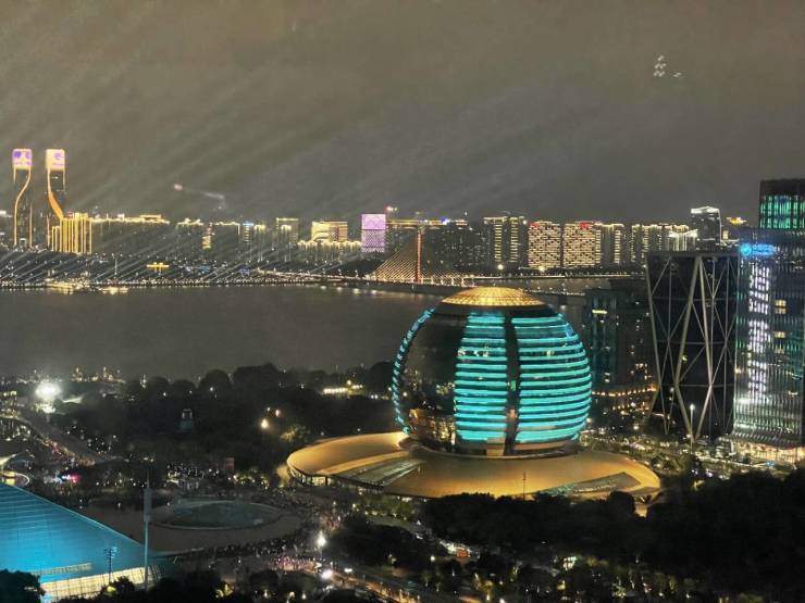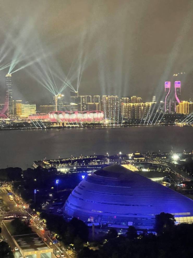 俯瞰日月同辉的璀璨,对望江岸莲花碗、杭州之门。