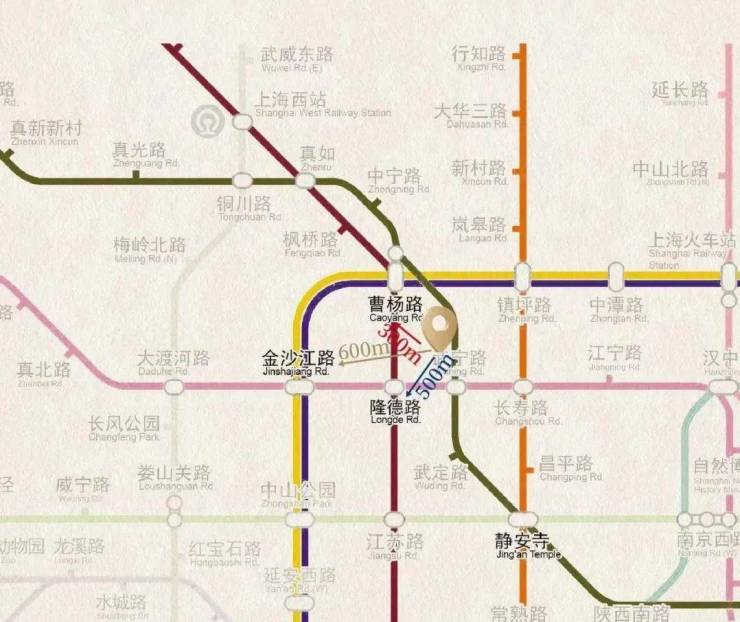 轨道/500米隆德路地铁口(13#)600米金沙江路站(3#\4#\13#)