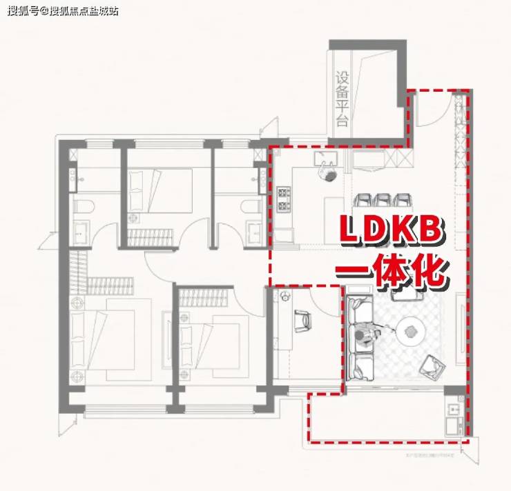 来到样板间内,99㎡户型制定了LDKB一体化空间规划,厨房、餐厅、客厅三大空间联通,打造一个可以让家人之间交流更为频繁的“家庭核心区”,促进日常互动交流,让家人更亲密,让陪伴更温馨。