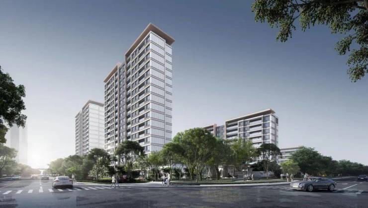 整体外立面窗墙比很高,以浅灰色铺陈立面,搭配香槟色铝板“勾金”手法,质感应该代表了现在的主流水平。