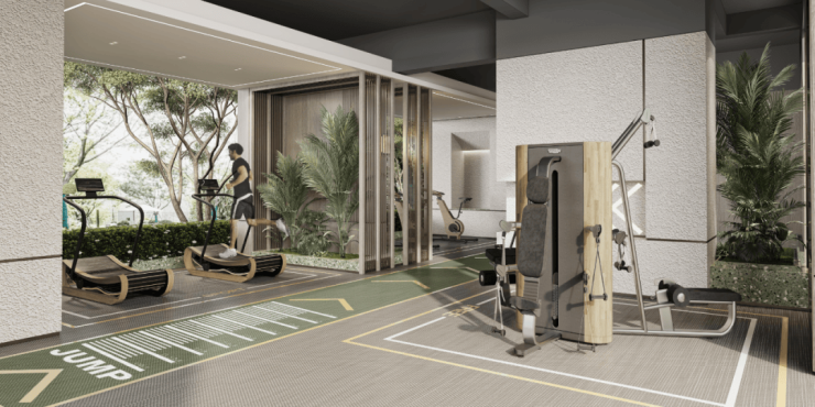 中铁·堂阅以家为中心,对延伸出来的公共空间、生活方式进行深入思考,巧妙利用楼栋架空层,构建“文娱”“健身”两大主题,打造一个邻里共情与互动的美好社区。