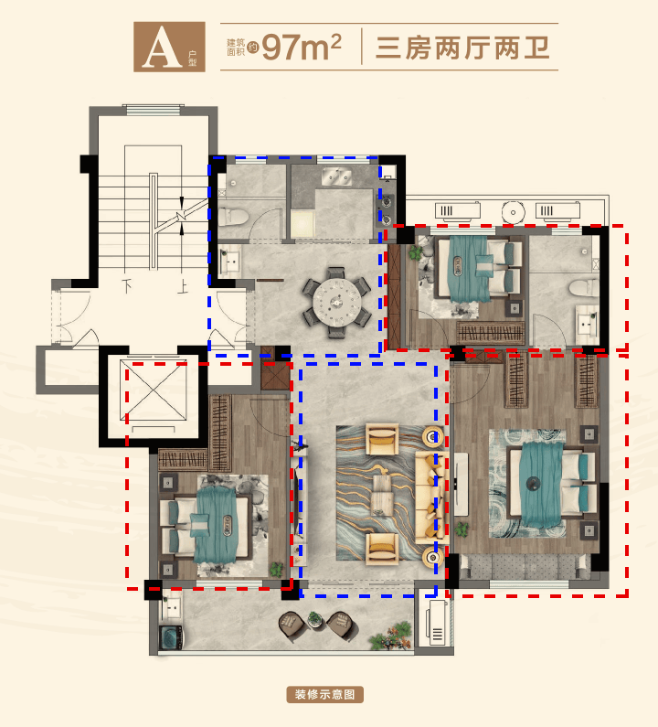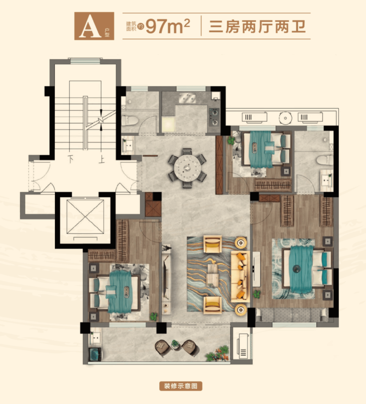 国金·西城云璟里用心匠造建面约97㎡三开间朝南三居,户型方正,南北通透,全明设计使整个居住空间通透敞亮,是市面上少有的三房朝南户型设计。充足的阳光能够保障房间的干爽,清晨推开窗,阳光缓缓的洒入房间,朝南向房间通透明亮,满足三代同堂的需求,满足您对生活的美好期待。