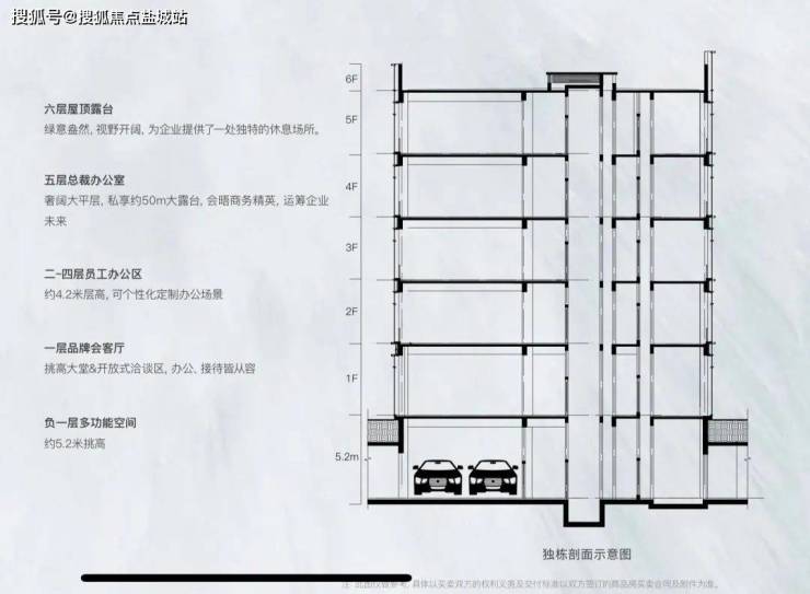 【层高】:一层挑高约4.8m,二到五层高约4.2m,打造开阔办公空间