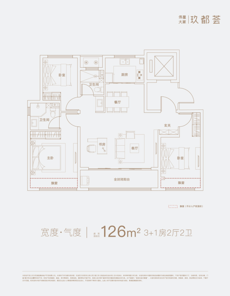建筑面积约126㎡,3+1房2厅2卫