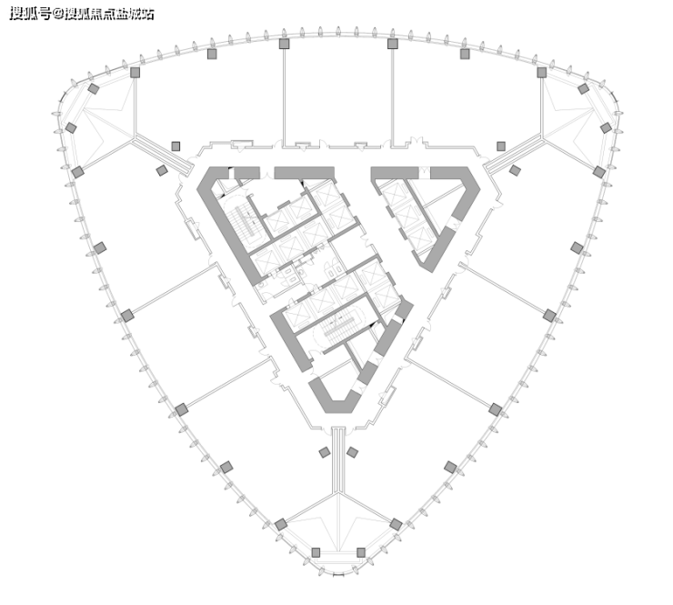 曲面三角不是巧合 建筑给城市带来的是一种柔性而不是尖锐,主楼用流动几何切割气流,更为了定向捕捉光线。曲面三角形的建筑轮廓,每条弧线经日照轨迹模拟优化精心计算。