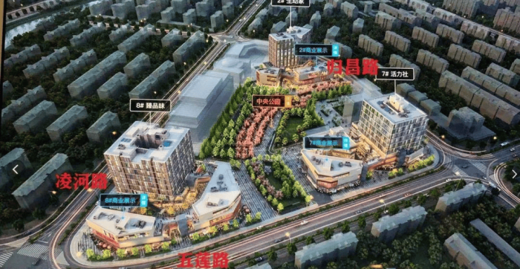 融创·精彩天地由三栋建筑围合式布局,主打“精致生活主题案场”概念。
