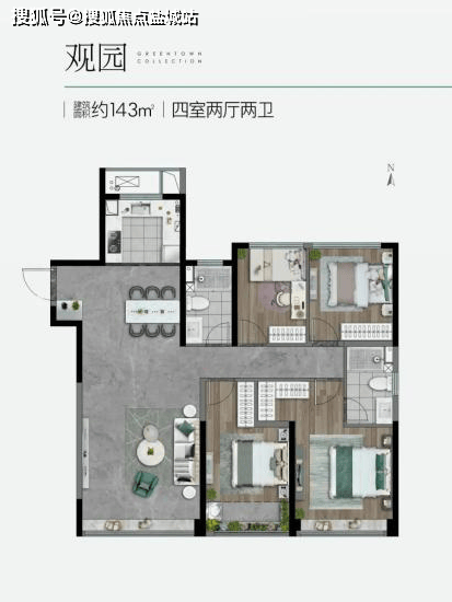 125㎡和143㎡这两个户型三开间朝南,竖厅设计,是目前市面上比较常见的功能三房、四房,功能区齐全但各个尺寸空间格局较小。143㎡玄关入户正对餐桌,个人感觉不太舒服