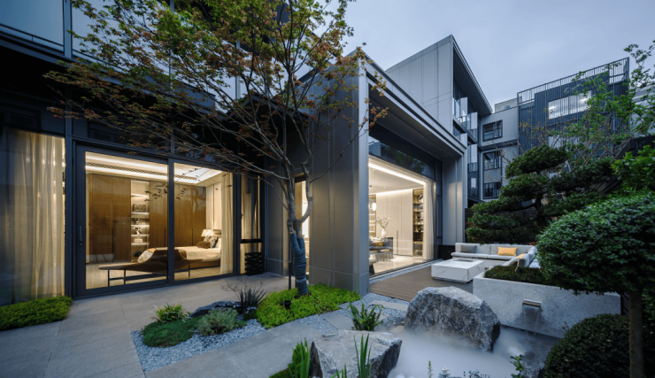 雅致的院子,闲暇时刻为家庭成员提供花园式的嬉戏地。秋季傍晚,饭后趁着暮色,一家人在院子里围炉煮茶,女主人浇灌着盛开的鲜花,孩子在院中嬉戏,男主人与父亲品着浓茶,享家庭温暖,观花赏景,传递平和高雅心境,一方院落,承载着欢声笑语和家的温暖,零距离亲近大地、拥享四时佳境。鲜花团簇,给忙碌一天的自己卸下防备与不安。