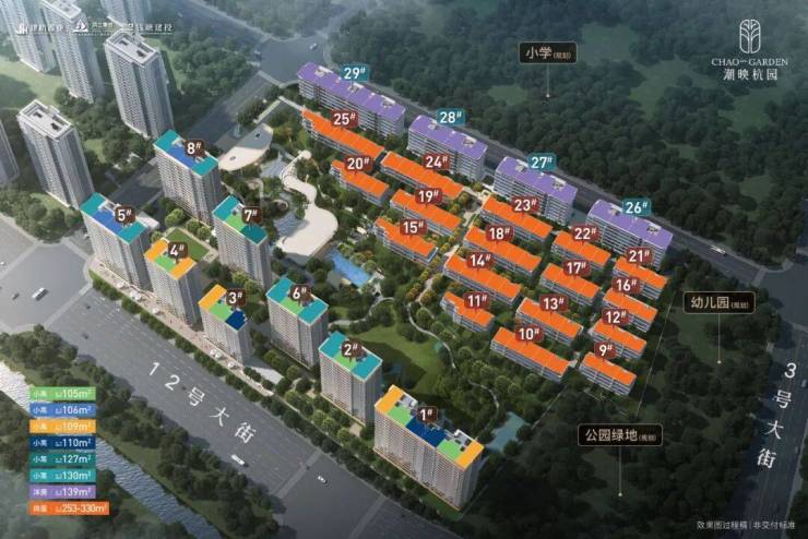 揽景小高层建筑面积约105-130㎡,为最大化景观面,突破性设计建筑面积约105㎡南向四开间。