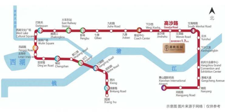 ◎【地铁覆盖】:邻近杭州地铁1号线,距离高沙路站直线距离约1.7公里。1站金沙天街,8站杭州东站,9站直达萧山机场。未来规划将有8号线西延和21号线双线交汇邻近项目,且地铁8号线延伸已纳入规划(信息来源:杭州市综合交通专项规划(2021-2035)、钱塘早知道(2025年9月22日最新消息)),绿色出行更加便捷。