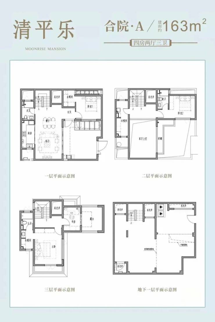 合院(毛坯): 附带40-100㎡花园&地下室(层高5.3m),三楼有近15㎡露台。