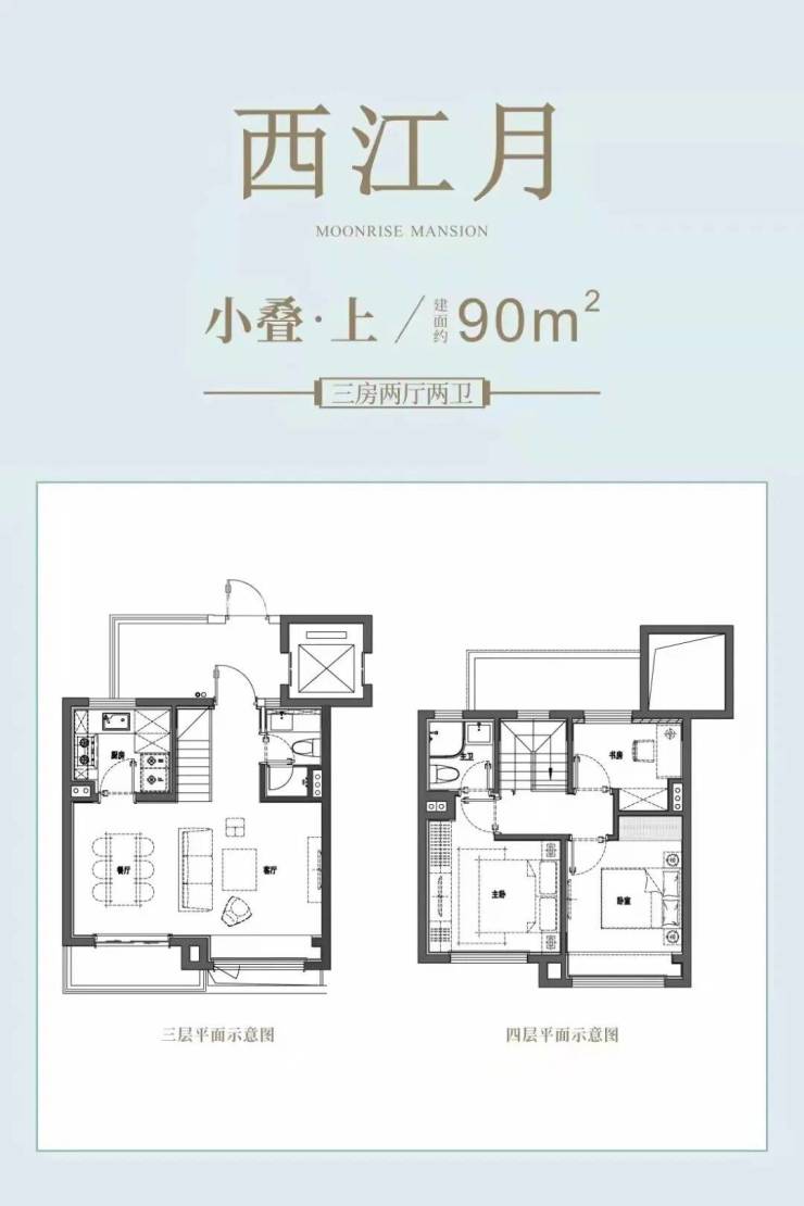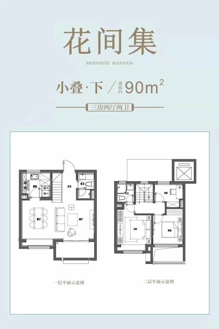 上叠(装修): 一梯两户双开门设计,近20㎡独立电梯厅,每层带有5-10㎡露台,且顶楼附带30㎡灵动空间,底层面宽6+米,视野开阔,采光通透。