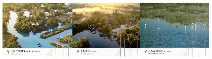 一路之隔五常湿地;西溪湿地(直距约2KM);云湖湿地公园(规划)(直距约2KM),享约10KM城市湿地带。