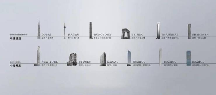 开发有迪拜哈利法塔、香港环球贸易广场、上海环球金融中心等城市地标。旗下中海广场、中海财富中心、中海中心、中海大厦、中海国际中心五大产品序列。