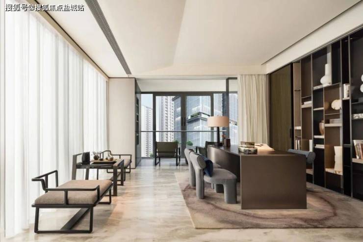 空间布局更是遵循“形制即礼序”的营造法则——对材质比例进行严谨推敲,墙面木作与地面石材的咬合关系暗合黄金分割,功能分区通过进退有度的空间节奏,实现“隔而不断”的呼吸感,让居者始终与自然保持亲密对话。