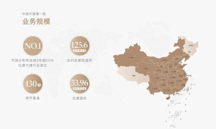 涵盖128个城市,总建筑面积122.8百万平方米(其中商业代建90.1百万平方米、政府代建32.7百万平米),在建面积53.2百万平方米(数据截止至2024年6月30日)。