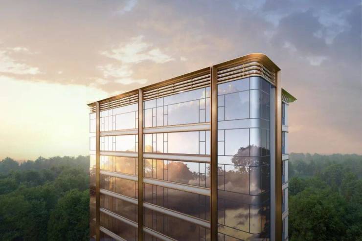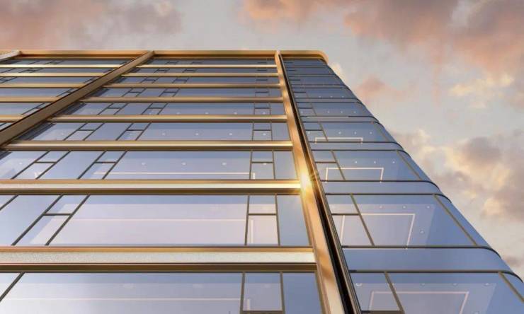同时,每层窗间以嵌入古铜色金属装饰线条,来强化横向层次的细节,形成类似华尔道夫酒店的意向。