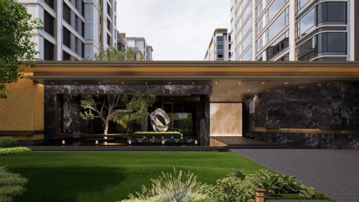 社区东侧的主出入口,仿佛隐藏在街边的隐奢酒店大门,神秘感浑然天成。