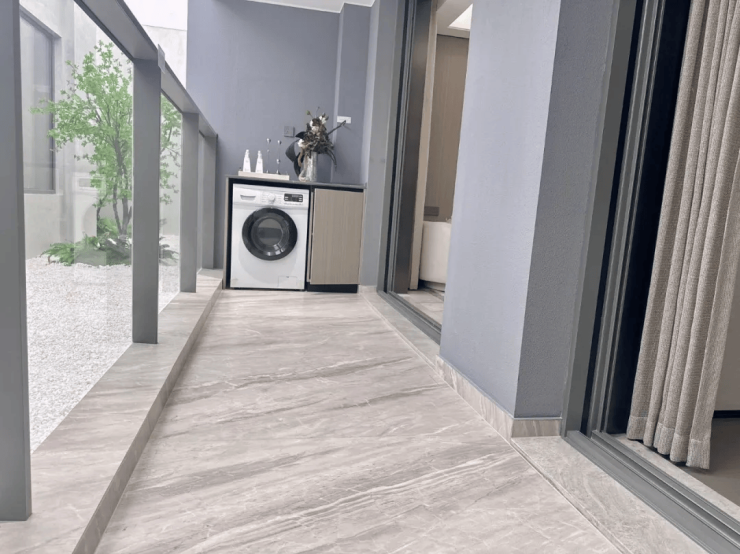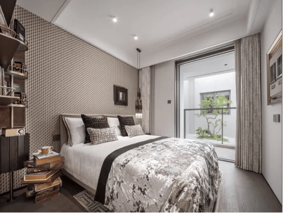 为了营造归家的仪式感,越秀杨浦天玥精心打造了宽约35米、高约5.1米的酒店式宏伟门头,并引入了价值不菲的名贵黑松。在酒店式入户大堂的营造上,精选了雪山飞狐奢石、高山流水奢石、星白奢石等珍贵材料,将品质感提升至极致。同时,酒店式入户大堂汲取海派经典之精髓,融入了古铜色金属格栅、海派风格的拼花装饰(首层及地下大堂)、以及海派复古压花玻璃等元素,营造出浓郁的人文气息。