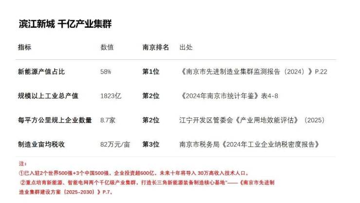 江宁滨江开发区位列南京市级开发区综合排名前三,高新技术企业数量年增30%,创新动能强劲。
