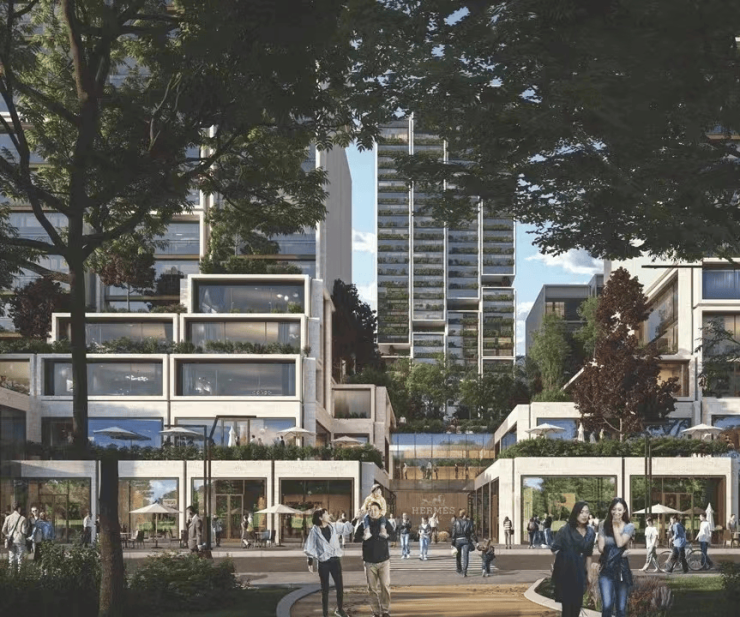 根据意向效果图,雅宾利4期预计为开放式社区设计,采用空中花园将社区立体连接在一起:项目将会采用地面抬高3层的设计,其中3层以下为商业底盘。