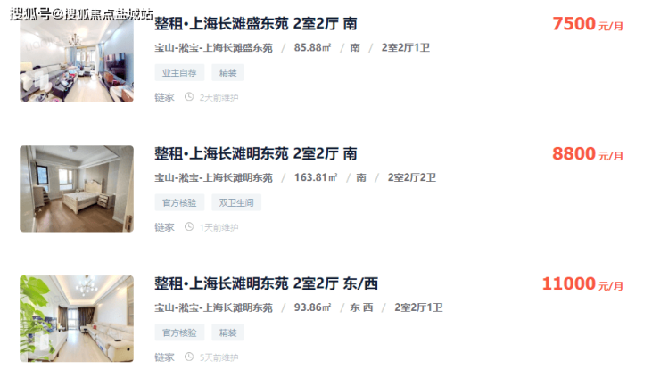 给大家参考一下附近租金,我选择了上海长滩前期的2房户型,租金至少在7500元/月,非常可观。