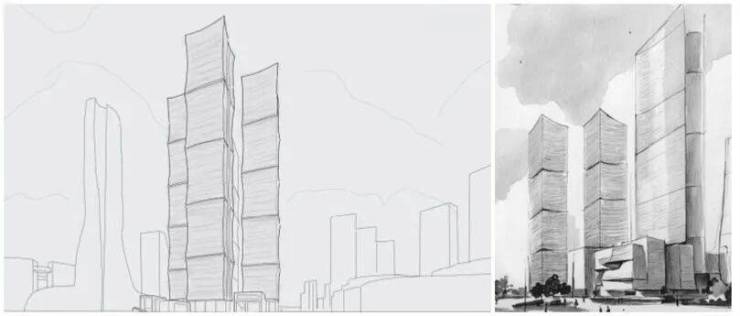 杭州绿发中心效果图过程稿