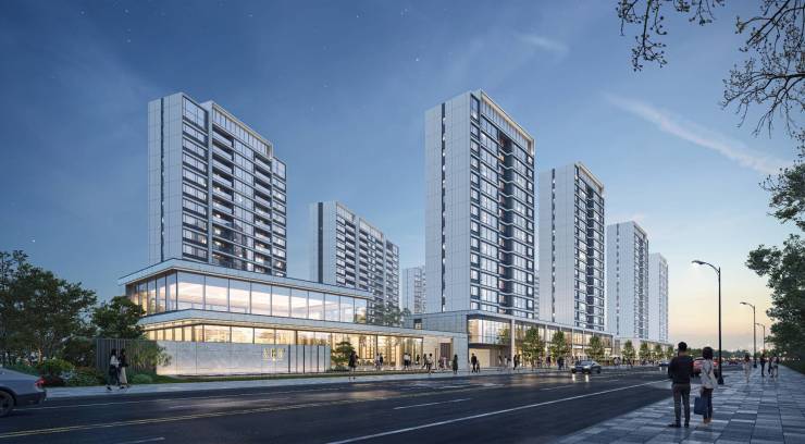 以现代简约的美学风格,臻选浅色铝板、大面宽low-e中空玻璃,打造轻盈通透的光感立面,更新城市人居封面。