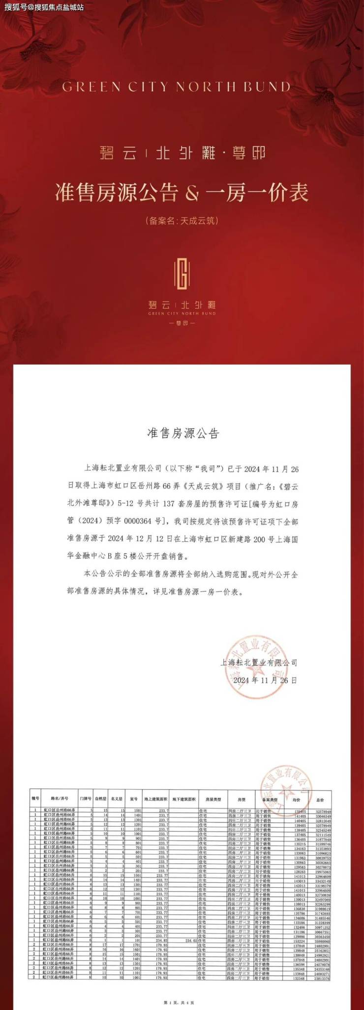「碧云·北外滩」135街坊去年已正式开工,规划建设4栋高层公寓和1栋多层保障房,主力建面约180-230㎡大平层,房地联动价13万/㎡。