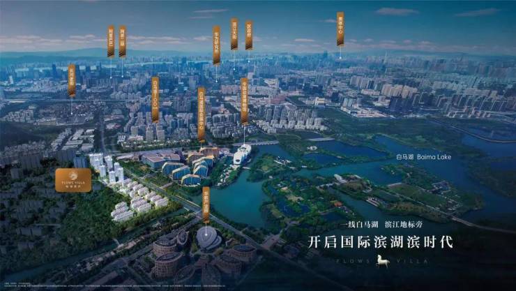 越王城山北麓,有湖名“白马”,万顷碧波,茫茫无际。白马湖与西湖隔江相望,南北辉映,被誉为“杭城双璧”。该区域依山傍水,自然景观优美、人文积淀深厚,湖山相望,钱塘江南岸难得城市湖居之地,也是滨江区唯一的山水共济景观资源板块。