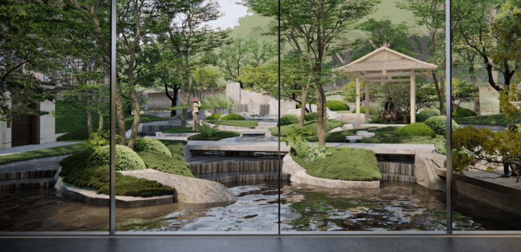 咏湖雲庐叠墅花园庭院模拟场景示意