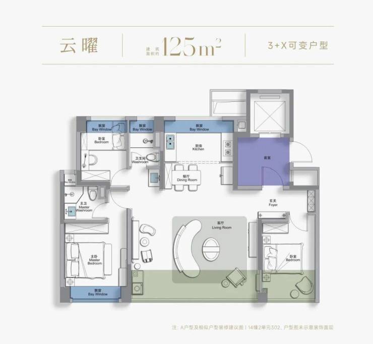 建面约125㎡云曜:奢尺四开间,全面迭新生活想象力