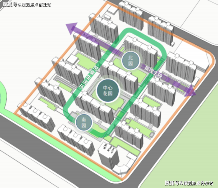 项目精心规划“ 一环一轴三园”,于建筑中另辟一方天地,以绿意包裹整个小区,打造绿氧环绕的公园住区。