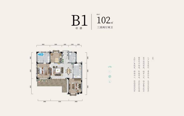 B联排-102㎡-三房两厅两卫(在售)