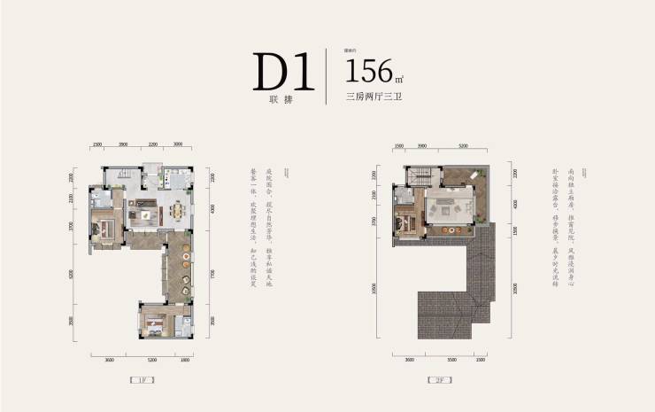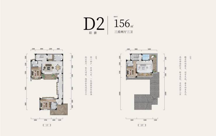 D2联排-156㎡三房两厅三卫(待售)