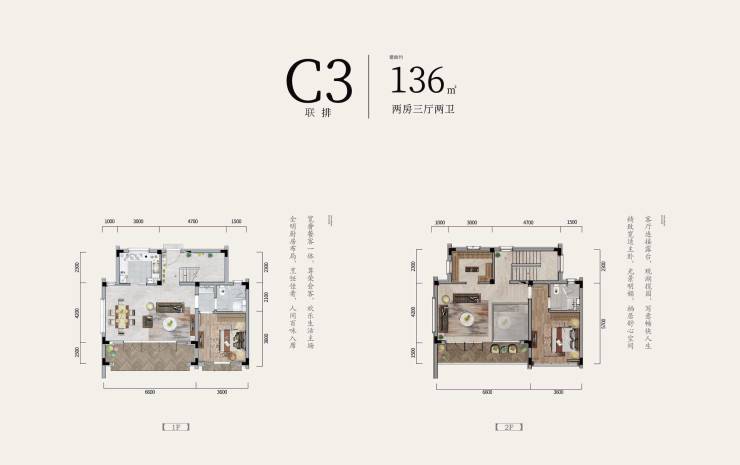 C3联排-136㎡-两房三厅两卫(待售)