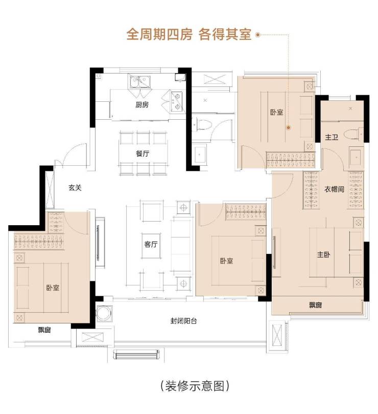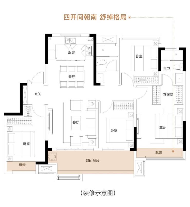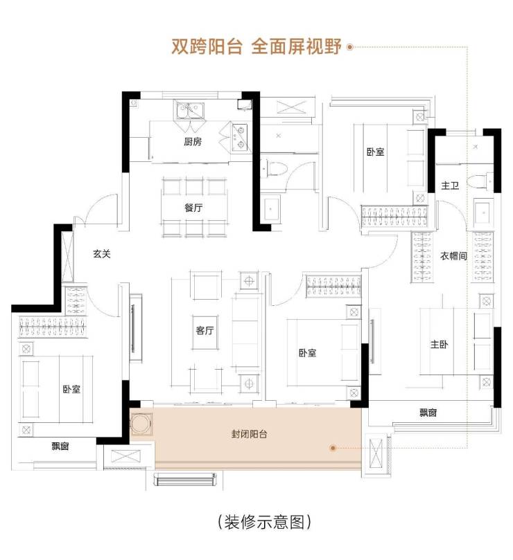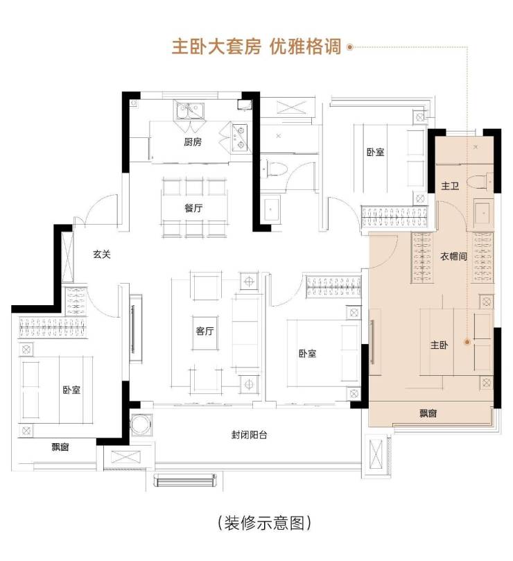 IMAX级宽厅 ,从容容纳一家人聚会休闲、畅聊家常,围桌而坐而不显丝毫局促。套房式主卧,配备独立衣帽间、逸景飘窗、私属卫浴,更大限度将闲适美学赋予时光,呈现惬意且有序的自在生活。