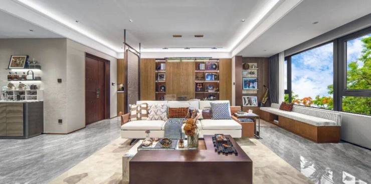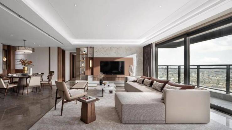 约6.5m双开间阳台 ,宛若余光中先生笔下,抬眸远望、安放闲适的都市观景台。不着痕迹地将和风好景引入室中,亦将阔达心情诉诸自然。