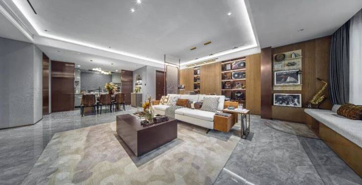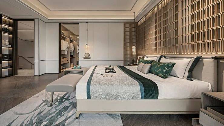 与此同时,主卧套房又恰如其分臻藏了主人生活的丰盈与私密。清晨,太太洗漱描妆,在步入式衣帽间上演时装秀;夜晚,先生忙碌归来,独立卫浴里泡泡澡,褪去满身疲乏,热爱生活的人终被生活犒赏。