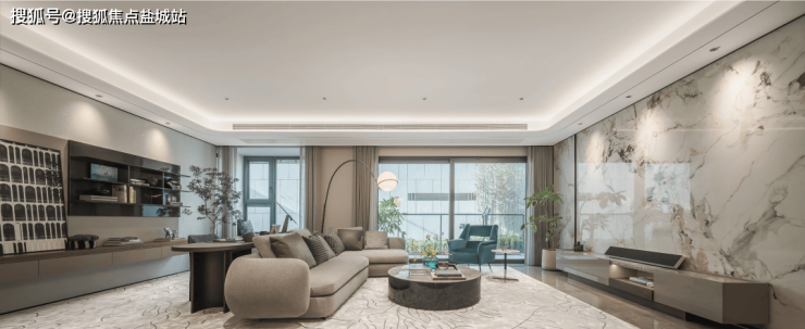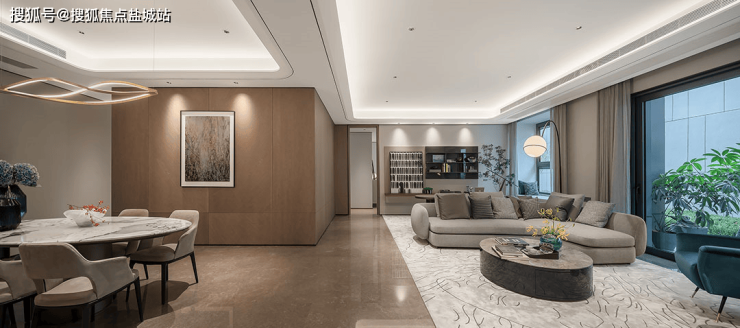 约7.7M超宽客厅及南向瞰景阳台,这个南向采光面的尺度感堪比别墅;另外,客餐厅+厨房一线相连,非常标准南北通透,整个户型的通透性以及通风度都表现的极为优秀。