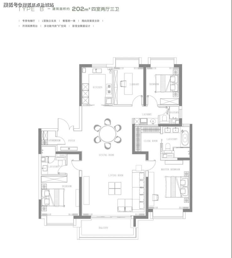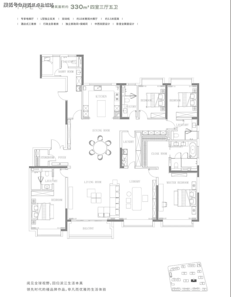 项目起步的户型都在150平以上,三期时户型门槛已经抬到了200平以上,主推的户型也是建面约190-330㎡四房两厅三卫,甚至都还是准一梯一户的设计。