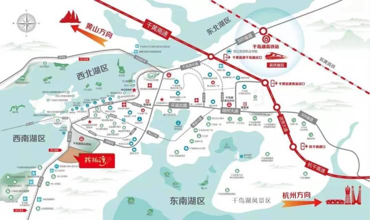 享三位一体交通格局便利:杭州萧山国际机场、杭黄高铁、杭千黄高速直达千岛湖。