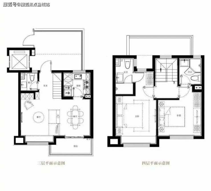 叠墅主力户型建面约90-135㎡,通过上小下大的退台式错位设计,使上叠拥有更大尺度的露台空间;再搭配南北独立入户的方式,让每一户都能拥有自己所在楼层的私家庭院。