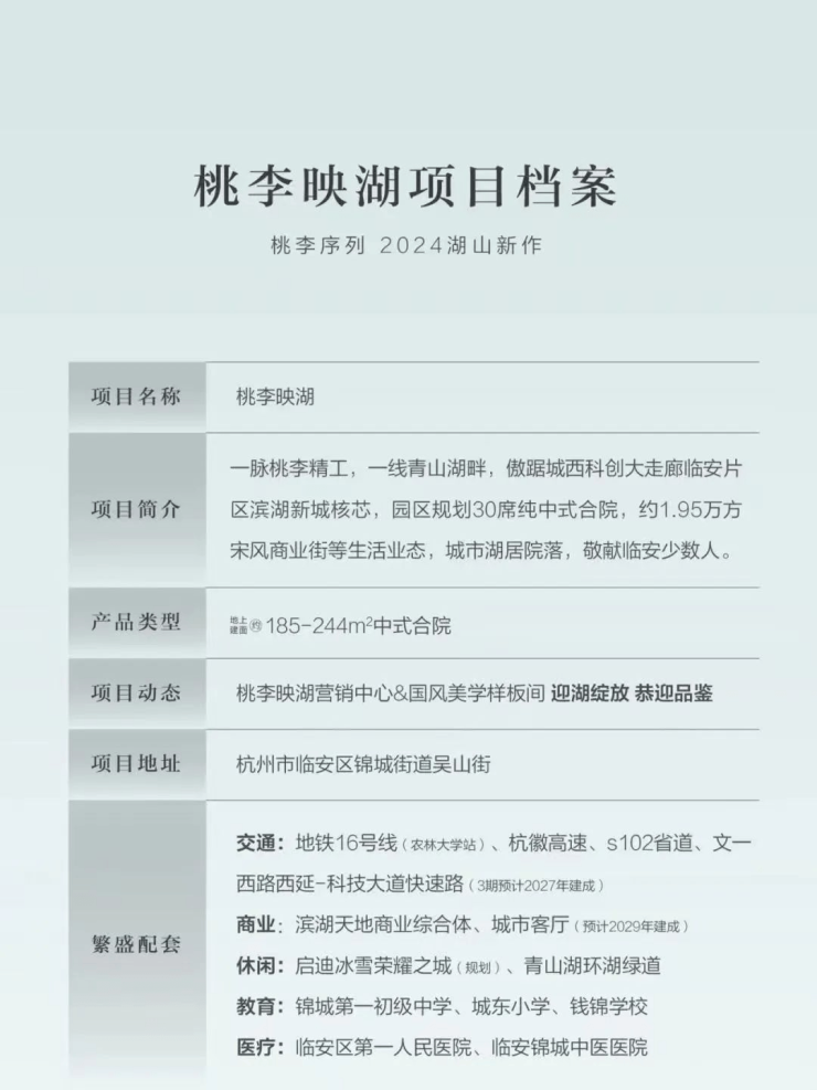 首先,桃李映湖拥有本土超强IP背书,新锦集团旗下临安国瑞置业的国企开发,一脉蓝城桃李的产品基因,匠造建面约185-244m²准现房合院。