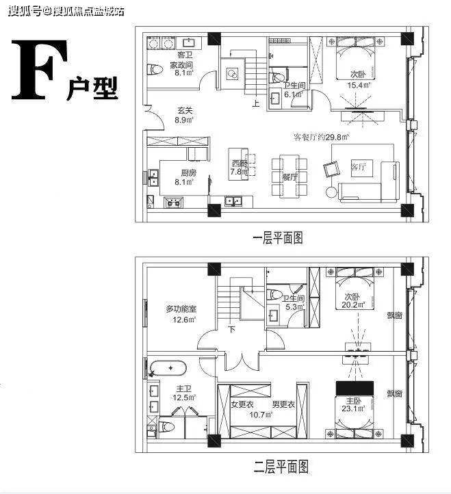 F户型:三套房、中西厨、奢阔主卧带大衣帽间