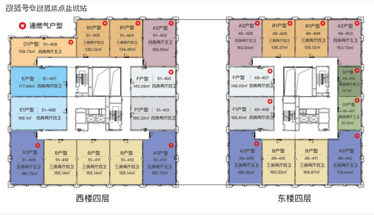 A户型:180度全景采光,超大尺度一体客餐厅,奢阔主卧。